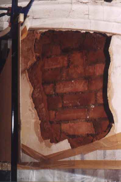 damaged plaster is removed, revealing the wall beneath, which luckily