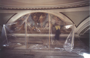 A special 'tent' was constructed so that a fine layer of varnish could be applied to the canvas |